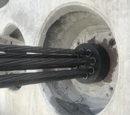 其中千斤頂在橋梁張拉施工過程中和智能張拉設(shè)備相配合,一個智能張拉設(shè)備可以配備兩臺或者四臺千斤頂,具體使用數(shù)量需要根據(jù)橋梁的重量、大小來判斷,智能張拉設(shè)備控制著千斤頂?shù)牟僮鳌T跇蛄簭埨瓡r,千斤頂拉動鋼絞線,長度由千斤頂?shù)墓ぷ鳑Q定,使用時應(yīng)避免出現(xiàn)預(yù)應(yīng)力鋼絞線斷絲或滑絲現(xiàn)象。因為在鋼絞線錨固之前,鋼絞線的伸長量實際上是兩個工作錨之間的鋼絞線的伸長量。