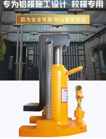 如果安裝完成的鋁膜和圖紙上設(shè)計(jì)的尺寸有稍微的差別時(shí),工人會使用鋁膜施工專用的爪式千斤頂放置到鋁膜的底部,通過手動搖動千斤頂?shù)氖直瑏砭_調(diào)整鋁膜的高度。如此以來基本上4-5天即可完成一層樓的施工速度。